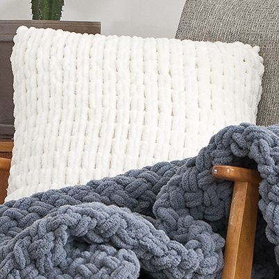 Alize Puffy -langasta sormineulottu pehmeä tyynynpäällinen. Helppo malli!