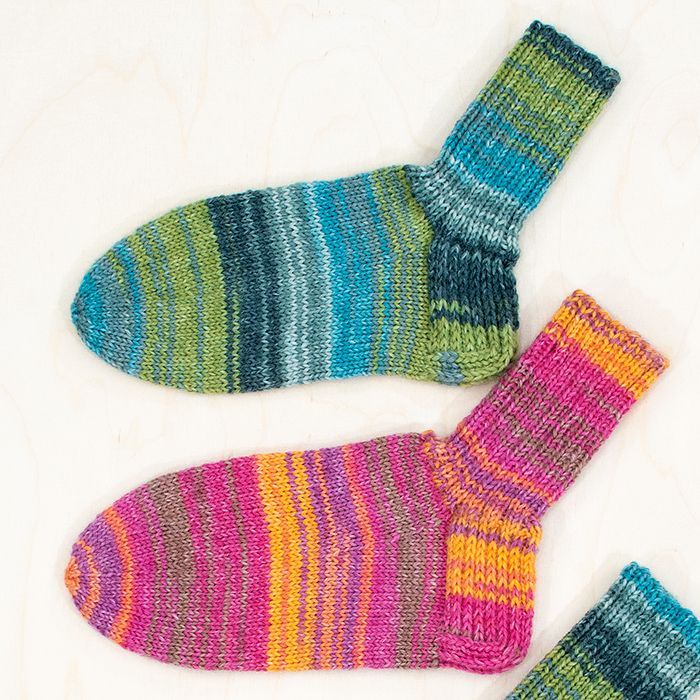 Helppo neuleohje perussukille Austerman Step 6 -sukkalangasta. Itseraidoittuva lanka tuo yksinkertaiseenkin sukkaan mukavan piristyksen. Sukassa on perinteinen vahvistettu kantapää ja kärjessä sädekavennukset.