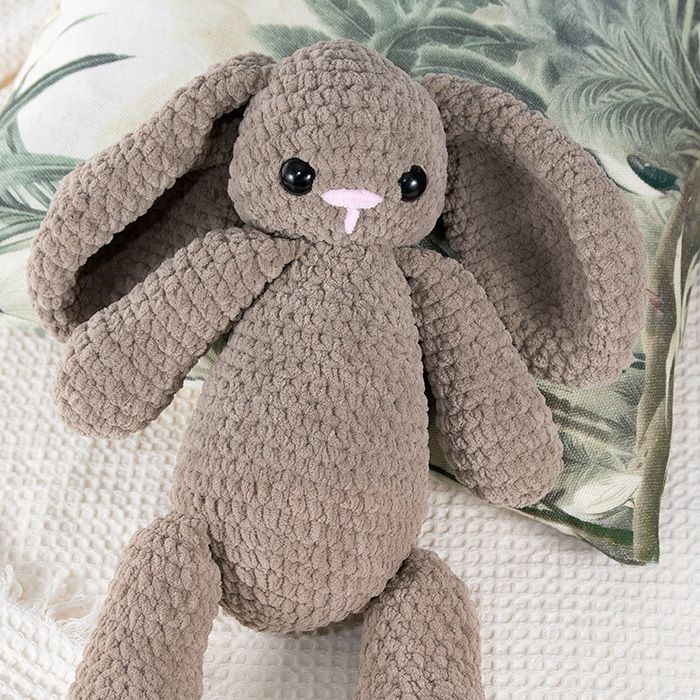 Ihastuttava Vellu-pupu on suloinen kaveri perheen pienimmille. Alize Velluto -langasta virkattu pehmolelu on mukavan pehmeä leikkikaveri ja turva yöunille.
