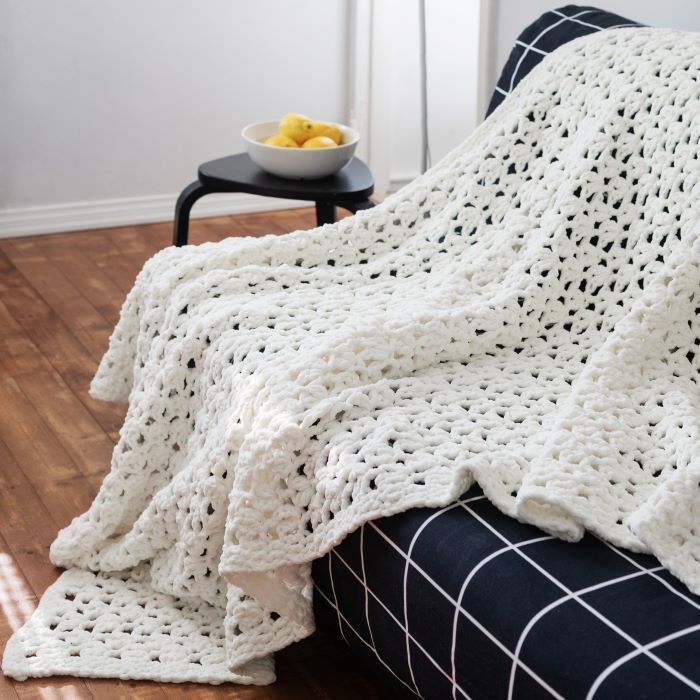 Kaunis ja pehmeä Pitsipeitto virkataan Alize Velluto -langasta. Pehmeästä ja paksusta langasta virkkaaminen on nopeaa ja lopputuloksena on hempeä pitsipeitto, joka lämmittää mukavasti. Ohjeesta löydät silmukkaluvut kolmeen erikokoiseen peittoon.