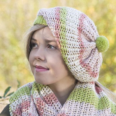 Silje-alpakkalangasta ja Novita Silveristä neulottu pipo ja tuubihuivi. Neulos on molemmilta puolilta samanlaista. Helppo malli.