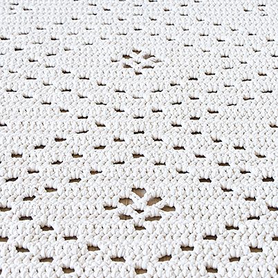 Lilli-ontelokuteesta virkattu suorakaiteen muotoinen pitsimatto. Kuteeksi sopii myös Paulina-punoskude.