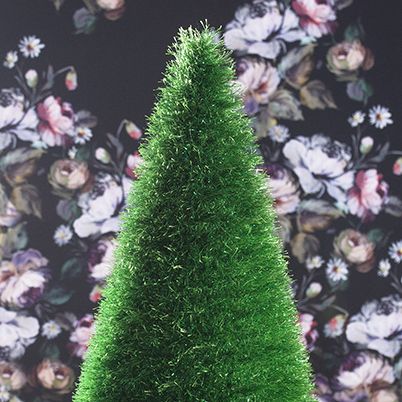 Stafil-muoviverkkoon Decofur Sim -langalla virkattu kartion muotoinen koristekuusi.