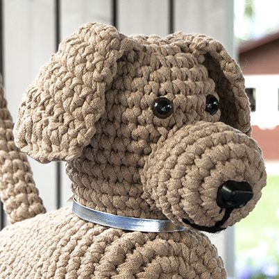 Lilli-ontelokuteesta virkattu napakka vahtikoira vaikkapa ovistoppariksi tai lahjaksi perheen pienimmälle.