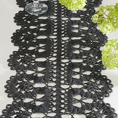 Merseroidusta puuvillalangasta osissa virkattu kapea kaitaliina.