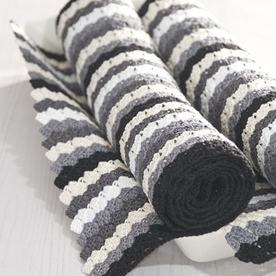 Virkattu raidallinen kaitaliina Esito-virkkuulangasta. Helppo malli.