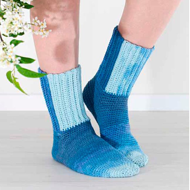 Alize Cotton Gold Batik -langasta virkataan suloisen kesäiset sukat, joissa langan värivaihtelut näkyvät kauniisti.