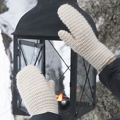 Neulakintaita muistuttavat, virkatut lapaset pehmeästä Inka-langasta.