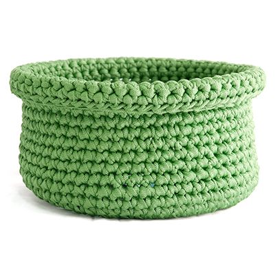 Stafil-laukunpohjaan Ministeri-kuteesta virkattu soikea ja pyöreä kori. Helppo malli.