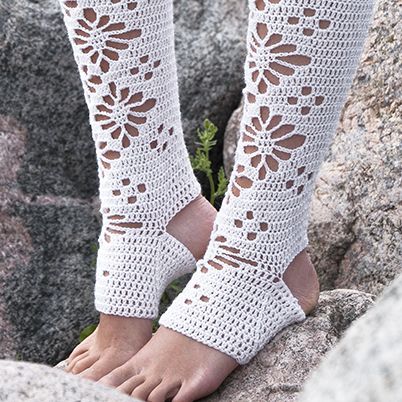 Superwash-sukkalangasta virkatut pitsikuviolliset säärystimet joustavalla reunuksella.