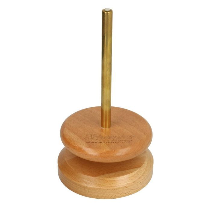 Puinen pidike lankakerälle. Aseta kerä pidikkeeseen, ja neulo vaivattomasti. Pyörivässä pidikkeessä lanka juoksee kerältä sujuvasti, eikä takkua tai kierry itsensä ympäri.