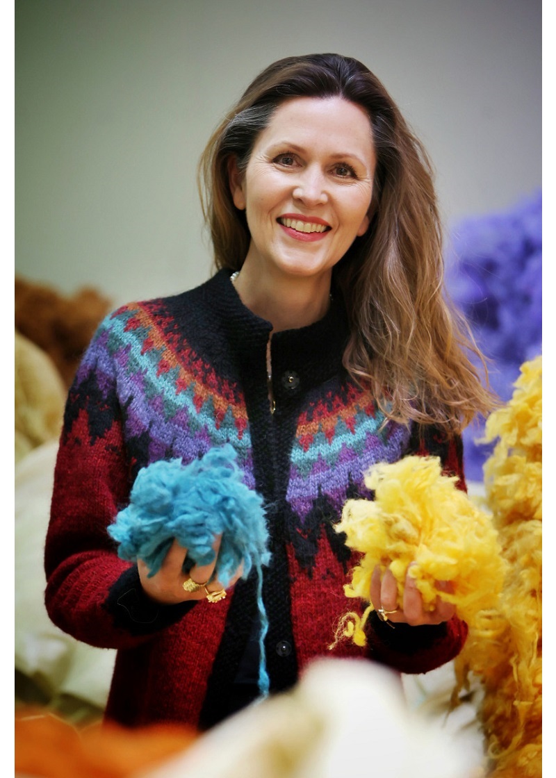 Lee Esselström esittelee Lankavalle suunnittelemiaan käsitöitä.