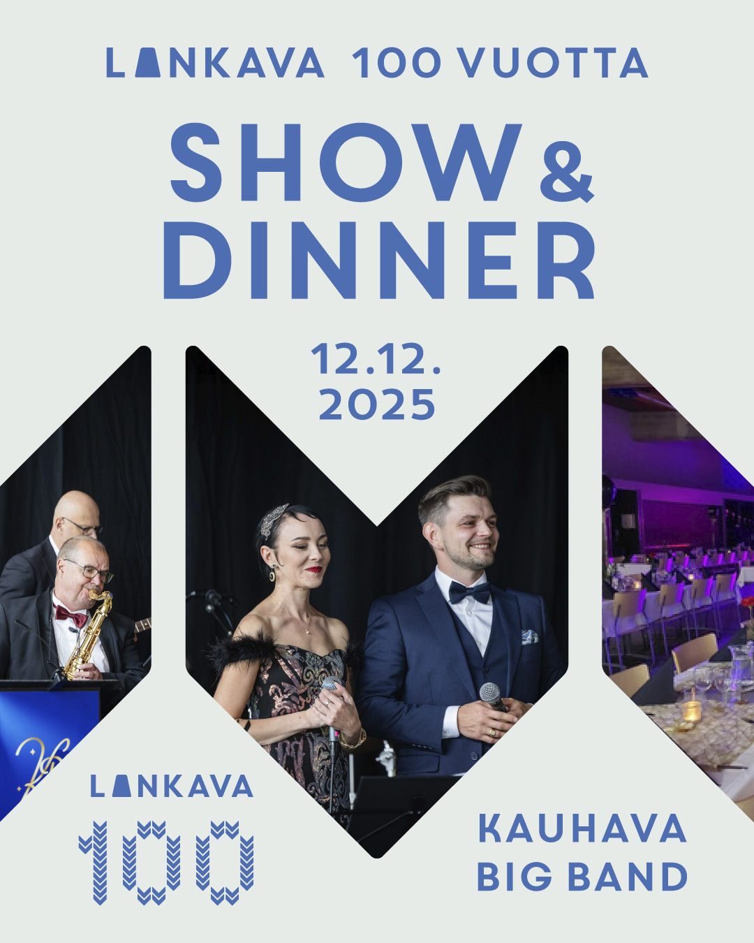 Lankava 100 vuotta Show & Dinner huipentaa juhlavuoden! 100-vuotisen tarinamme kunniaksi järjestämme Lentohotellin ravintolassa ilmaisen Kauhava Big Band -konsertin, jossa sukelletaan Lankavan historiaan!