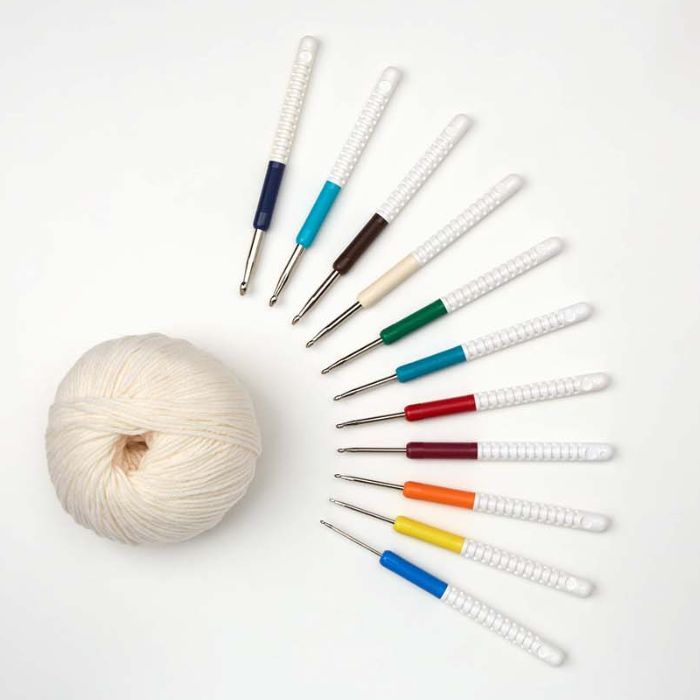 I AddiColour, den klassiska modellen av Addi-virknålar, är virknålar färgkodade efter storlek. Tack vare den tjockare handtagsdelen ligger virknålen bättre i handen vid virkning och det långa handtaget gör hanteringen av kroken enklare. Spetsen på AddiColour-virknålen tillverkats av aluminium och handtaget av plast.