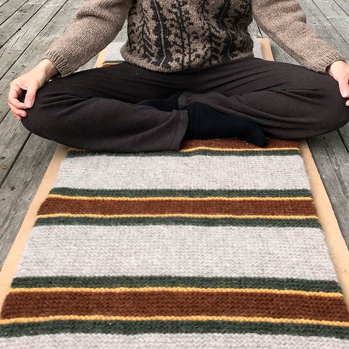 Ett enkelt stickmönster designat av Lee Esselström. Den tovade yogamattan stickas med dubbelt Istex Lettlopi-garn och det färdiga arbetet tovats i tvättmaskinen. Beskrivningen till denna yogamatta är lätt att följa, eftersom arbetet stickas fram och tillbaka, alla maskor räta.