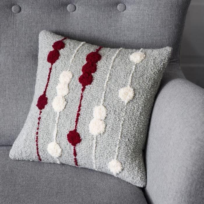 Den vackra Pärlor kudden tuftas med Lankava Into ullgarn. Genom att byta färg på trådarna, får du flera olika kuddar med samma vackra design.