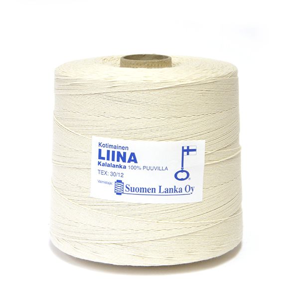 Liina fiskegarn 18-trådig är ett finskt inhemskt bomullsvarp som passar till varp för stora mattor och ryamattor och ryor. 18-trådig Liina-fiskegarn används också till virkning av väskor och små inredningstextiler.