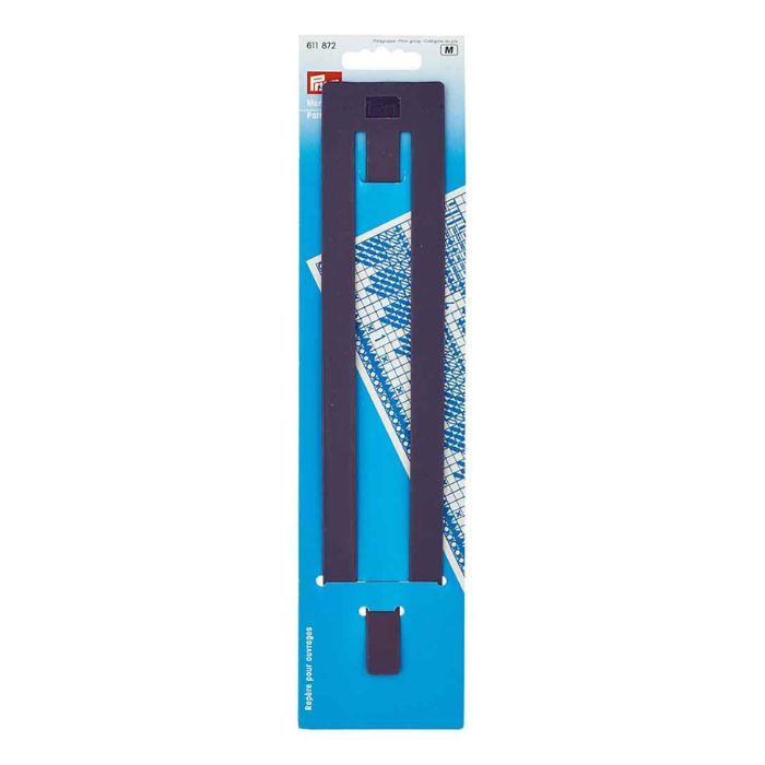 Mönsterlinjalen är en praktisk verktyg som hjälper dig att läsa instruktionerna. Linjalen gör det lättare att hålla sig till linjen och påskyndar ditt arbete.