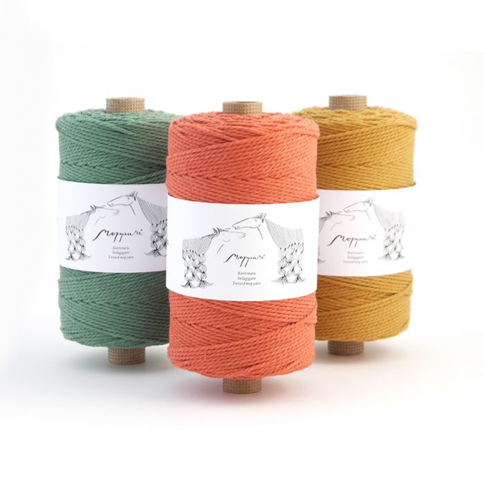 Moppari är ett tätt tvinnat moppsnöre som har tillverkats av återvunnen bomull, men innehåller även lite polyester.