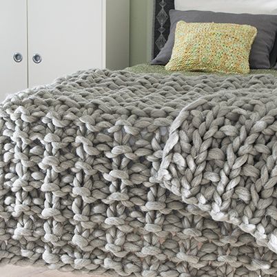 En stor stickad filt av Grosso Superjockt Ullgarn.
