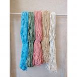 Färgade trikåtrasor i bomull passar för vävning av till exempel mattor men även för virkning av mattor och korgar.